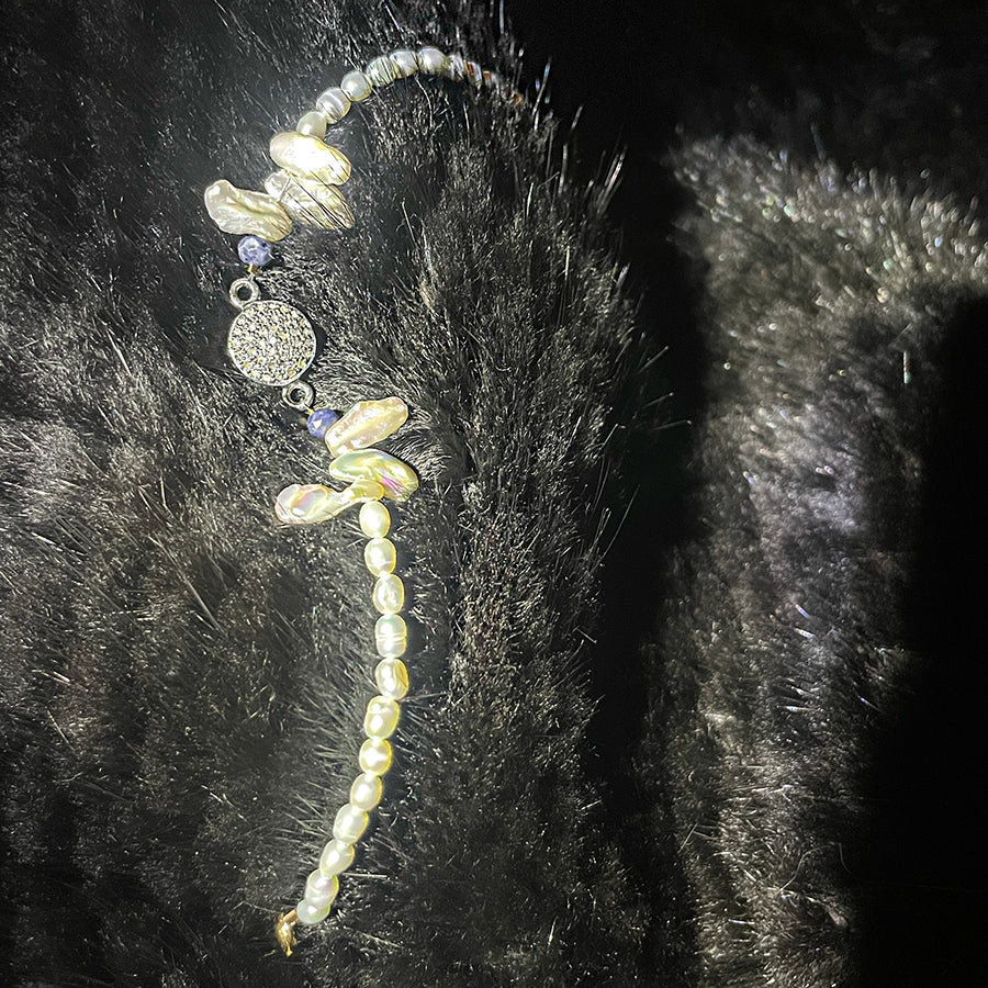 Bracelet: Diamond Disc and Pearl with Sapphire Bead