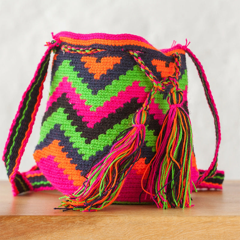 Each bag is unique and one of a kind. These bags are handmade by artisan craftswomen in different regions of Colombia that I have visited over the years. They are vibrant and special just like the hands that made them. Perfect for trips to the beach, grocery store errands, or drinks out with the girls. The beautiful work womanship and colors drew me in right away. I know this bag will do the same for you.