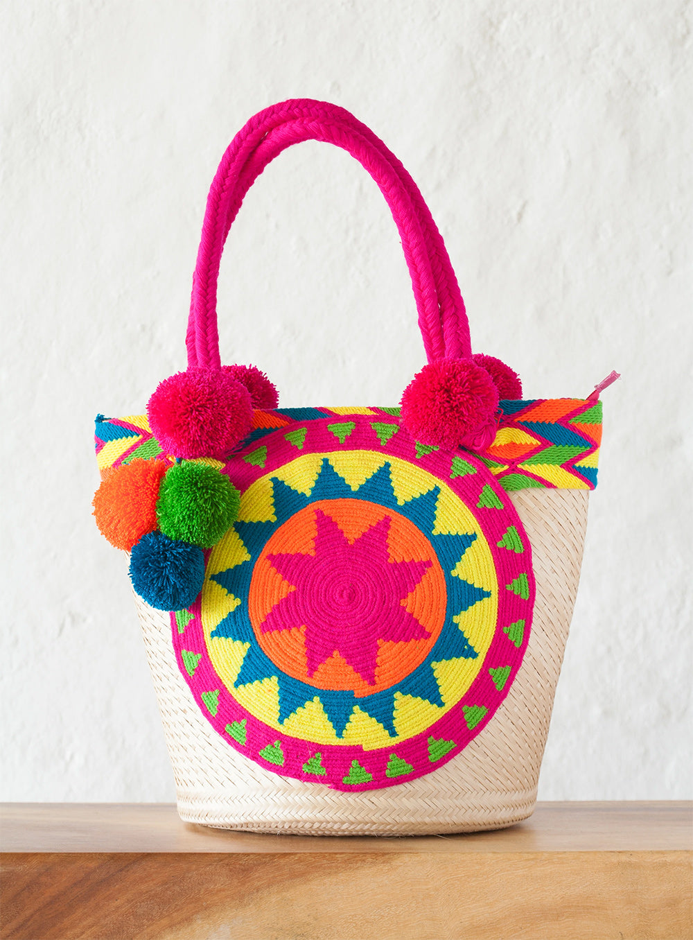 Each bag is unique and one of a kind. These bags are handmade by artisan craftswomen in different regions of Colombia that I have visited over the years. They are vibrant and special just like the hands that made them. Perfect for trips to the beach, grocery store errands, or drinks out with the girls. The beautiful work womanship and colors drew me in right away. I know this bag will do the same for you.